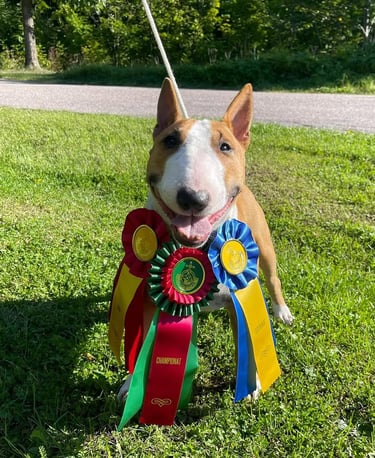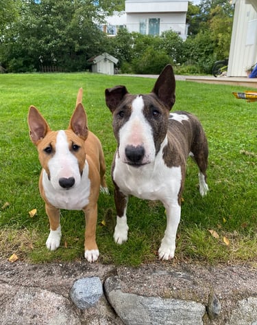 Highland Bullies began with a simple passion: to raise well-adjusted, healthy, and social Bull Terriers. With years of experience, we’ve built a breeding program that focuses on temperament, health, and quality rather than quantity. Each of our dogs is a cherished member of our family, and every puppy is raised underfoot in a loving home, surrounded by care and attention from day one.